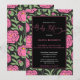 Elegant design featuring pink peony flowers pattern and trendy calligraphy on black background. This design is perfect for your simple, elegant floral Baby Shower. The text can easily be personalized for a unique one of a kind design for your special day.