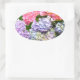 Elegant pink purple blue floral hydrangea bouquet oval sticker