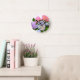 Elegant pink purple blue floral hydrangea bouquet round clock