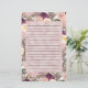 Elegant lined personal stationery with beautiful pink and purple peonies/floral on a white background.