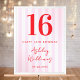 Elegant Pink Red Modern 16th Birthday Sign Poster