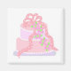 A beautiful cake in shades of pink, a polka dot pink and white ribbon and pretty cascading flowers accent this design.