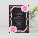 Elegant Pink Rose Floral Black 40th Birthday Invitation