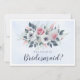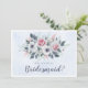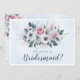 Beautiful "will you be my bridesmaid" card design featuring pink and white watercolor flowers on a pale blue background. Matching items available.