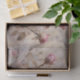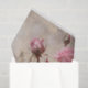 A romantic design of dried pink roses laid on parchment with an elegant old world cursive font, decoupage tissue paper.
