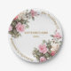 Elegant Pink Roses With Golden Fonts Paper Plate. Easy to be customized by adding name, monogram, initial or logo. Also, fonts style, colours and sizes can be changed. Matching items available.
