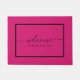 Elegant welcome Doormat with a black script on a pink background. Personalize with your family name or text.