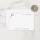 Stylish personalized note cards with fancy lettering script initials or monogram and name in your choice of colours (shown in pink). CHANGES: The text font style, colour, size and placement can be changed in EDIT. ASSISTANCE: For help with design modification or personalization, colour change, resizing, transferring the design to another product or if you would like coordinating items, contact the designer BEFORE ORDERING via the Zazzle Chat MESSAGE tab below or email makeitaboutyoustore@gmail.com.