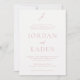 Elegant wedding invitation featuring a classic design with your monogram in a script font along with your names and details in a traditional serif font.