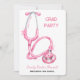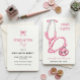 Elegant Pink Stethoscope Nurse Doctor Graduation Invitation