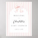 Sophisticated girly baby shower welcome sign that features a simple pink & white stripe pattern, a cute pink bow.