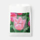 This design features elegant pink tulips in its natural greenery. A beautiful field of pink tulips is used for the background. The wording is elegantly framed with a simple white opaque border background. This is the perfect floral wedding design ideal for any wedding theme. Elegant and romantic tulip flowers wedding favour bag design with modern elements. Matching wedding invitations and other stationery items are also available.