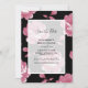 This design features elegant pink roses. Featuring black background in combination with the pink vintage flowers. Opaque white layer, white border and simple text create a sophisticated classy look. The elegant arranged floral layout on one side and the black opposing side displaying the bride's and groom's names and a single rose combine to bring together a truly unique design. This save the date card design is ideal for any wedding theme. The perfect design for all seasons. Matching wedding invitations and other stationery items are also available.