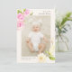 This stylish and elegant 2-sided photo birth announcement card features four (4) photos (front & back) of your newborn baby girl, custom text that can be personalized, hand painted watercolor illustration of pink camellia and white magnolia flowers. Customize this template product by adding your newborn baby's name, birth record, and the parents' names.