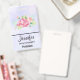 Name badge with a beautiful and elegant watercolor created floral bouquet. Pink garden flowers surrounded by light green foliage.