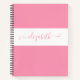 This pink and white colour block notebook features an elegant spelling of a name, which you can personalize.