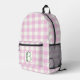 A classic gingham plaid pattern with monogrammed letter with details of watercolor eucalyptus and lavender.