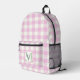 A classic gingham plaid pattern with monogrammed letter with details of watercolor eucalyptus and lavender.