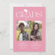 Celebrate your graduates in timeless, sophisticated style with this elegant pink and white joint graduation party invitation. Set against a cute pink background, the modern white serif “GRAD” typography creates a refined focal point, complete with a stylish graduation cap icon positioned above the “R.” The flowing tail of the “R” transforms into a sleek tassel, delivering a cohesive, luxury-inspired finish.