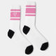 Retro stripe tennis socks in retro striped pink and white colours. Personalized Gift for a tennis player. Trendy modern tennis player gifts. Cool retro modern gift for your school tennis coach or school tennis team! Tennis socks holiday Christmas gifts for him and her.
