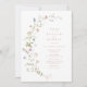 Elegant delicate watercolor wildflowers, set alongside your event details. Pastel palettes of soft blush pink, off white, beige, dusty blue, and botanical greenery, simple and romantic. Great floral brunch and bubbly bridal shower invitations for modern rustic party, boho country garden party in spring and summer.