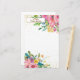 Beautiful pink and yellow floral with green leaves and gold glitter on white personalized stationery. Your name is in the top left corner, written in a pretty script font. Contact us for help with customization or matching products.