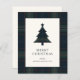 Modern Christmas card featuring a timeless design with a Christmas tree with a muted navy blue and green plaid pattern along with the greeting, "Merry Christmas". Use the template to add your personalized message.