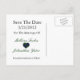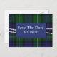 Mariage élégant enregistrer la carte de poste de date faite dans le traditionnel plaid de Forbes vert et bleu tartan. De belles images d'un double fil de perles, avec une plaque bleue et un texte blanc décore le motif plaid. Tout le texte, sur la plaque avant et à l'arrière de la carte, est entièrement personnalisable pour lire ce que vous voulez.