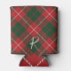 Elegant Plaid Red Green Tartan Monogram Custom Can Cooler