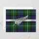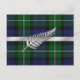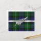 Elegant wedding save the date post card done in the traditional Forbes green and blue tartan plaid. Lovely graphics of a silver tone ribbon and fern decorates the front of the plaid card. All text, on the back of the card, is fully customizable to read what you want.