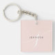 Elegant Plain Blush Pink White Script Monogram Keychain