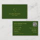 Elegant Plain Forest Green with Monogram QR Code Business Card