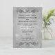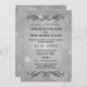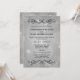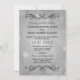 Elegant and chic wedding invitations with platinum silver and pewter grey circles background design with metallic look and black scroll frame are perfect for a new year's eve celebration, but the design can be personalized for other occasions as well. Silver and platinum grey with black colour scheme.
