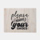 Simple and elegant personalizable remove your shoes welcome doormat with for any entrance a wood texture. makes a great and elegant home decor gift idea for your new home, a housewarming party or any event.