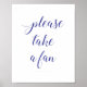 This navy blue "please take a fan" sign is perfect to let your guests know you have fans available for your hot summer wedding. Part of the Alejandra Collection.