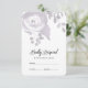 Elegant plum and grey floral with dots wedding rsvp. This card features black text.
