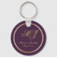 Elegant Plum Purple Gold Monogram Script Wedding Keychain