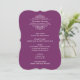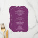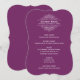 Elegant and formal wedding dinner menu cards feature a pop of colour with white reverse printing. Personalize with your event date and menu details. Display cards on guests' dinner plates or wrap them in napkins at every place setting for a stylish look. Plum purple background colour.