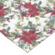 A pretty red and green poinsettia bouquet is embellished with seasonal greenery and red berries to make a pattern across this festive Holiday table runner.