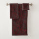Décorez votre salle de bain avec ces somptueux set de serviettes. Un élégant motif de poster de animal léopard noir sur rouge foncé ajoutera à votre décor tout en maintenant votre style féroce. Créé pour la personne audacieuse, élégante et sans excuses à la mode qui aime les posters de animaux, surtout ceux des grands et sauvages chats comme les pumas et panthères.