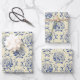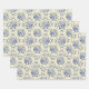 Elegant Preppy Blue Beige Hydrangea Bow Pattern Wrapping Paper Sheet