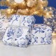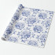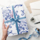 Elegant Preppy Blue Toile Hydrangea Bow Pattern Wrapping Paper