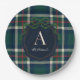 Elegant Preppy Plaid Monogram Christmas Paper Plate