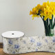 Elegant Pretty Blue Floral on Cream Background Satin Ribbon