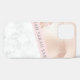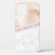Stylish geometric iPhone case in faux rose gold, pink and white marble. Add your name or any other text.