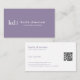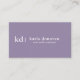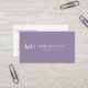Elegant minimalistic professional business card with a custom monogram on the front on a purple-grey background and custom typography on the back on a white background.
