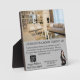 Minimal and simple marketing Tabletop Plaque with Easel for every realtor and real estate agent. The text and images can be personalized. Add your contact data and company logo, a QR code or other relevant information to this real estate agency promotional product.
