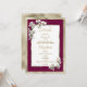 Cette magnifique invitation de mariage présente de superbes orchidées tropicales élégantes en aquarelle blanche, bordeaux et or, parfaites pour un programme de détails de mariage élégant et sophistiqué. Cette superbe fleur tropicale est idéale pour les couples luxueux et élégants. Personnalisez ce design avec votre message et vos informations personnelles. Tous les designs sont imprimés.
