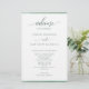 Élégant programme de mariage vert avec des bandes de bordure vert délicat encadrant les détails de votre programme de mariage. Possibilité de modifier et d'ajuster le texte en sélectionnant la personnaliser plus loin. Avant avec les détails de la cérémonie mariage, arrière avec les noms de la fête de mariage et message de remerciement pour vos invités ou tout autre texte que vous aimez, notre est simplement un exemple. Elégant, simple et gracieux. Initiales Une partie de notre collection "Mariage de monogrammes botaniques d'aquarelle verte" avec une variété de produits de coordination disponibles, y compris le menu, les cartes de sièges de table, les numéros de table, les cartes de remerciements et plus encore. Visitez la collection entière avec ce lien : https://www.zazzle.com/collections/green_watercolor_botanical_monogram_wedding-119061961538101267