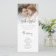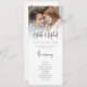 Téléchargement numérique imprimable ou imprimé Elegant Photo Overlay Script Wedding Programme. Elégance contemporaine avec votre photo sur le bord supérieur derrière une couche de teinte graduée avec le texte partiellement recouvert sur le dessus. Il vous suffit de remplacer l'exemple d'image par le vôtre et de personnaliser facilement les mots à vos propres détails.